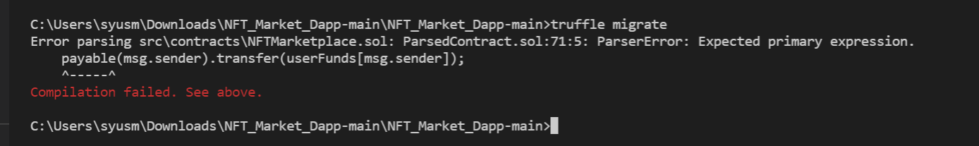 팀원한테 물어보니 payable이 truffle버전 5이상부터 된다는 얘기를 해서 (하지만 관련문서를 찾아봐도 잘안나온다 솔리디티 버전에 관한 얘기는 있는데 "address payable not supported in solc 0.4.x or earlier." 나는 solc버전이 0.8이었어서...)
