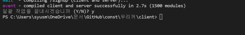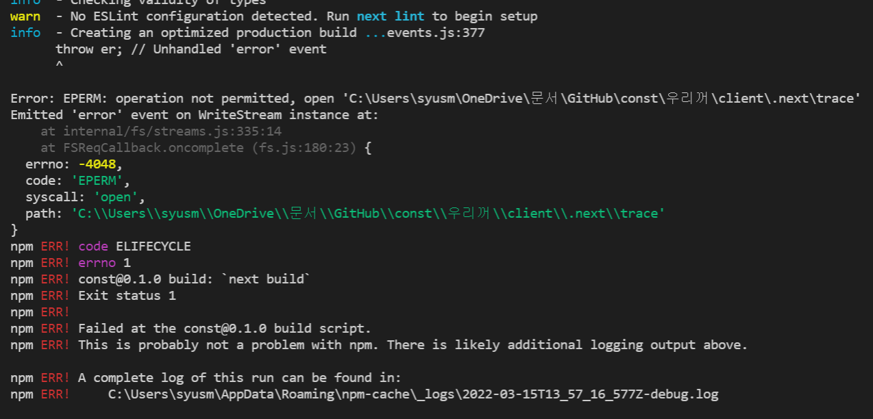 해결: 실행해놓은 npm run dev 취소하고 하니까 됨