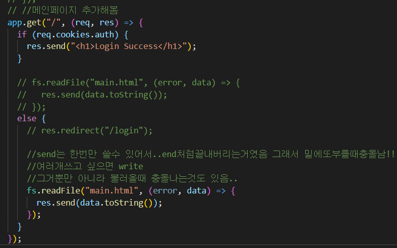 res.send도 하나만 쓸 수 있어서 if else 안에 넣어주고...
