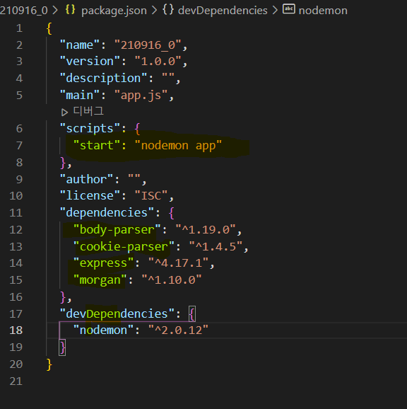 nodemon app을 하면 app.js를 nodemon으로 실행한다는 뜻이야
