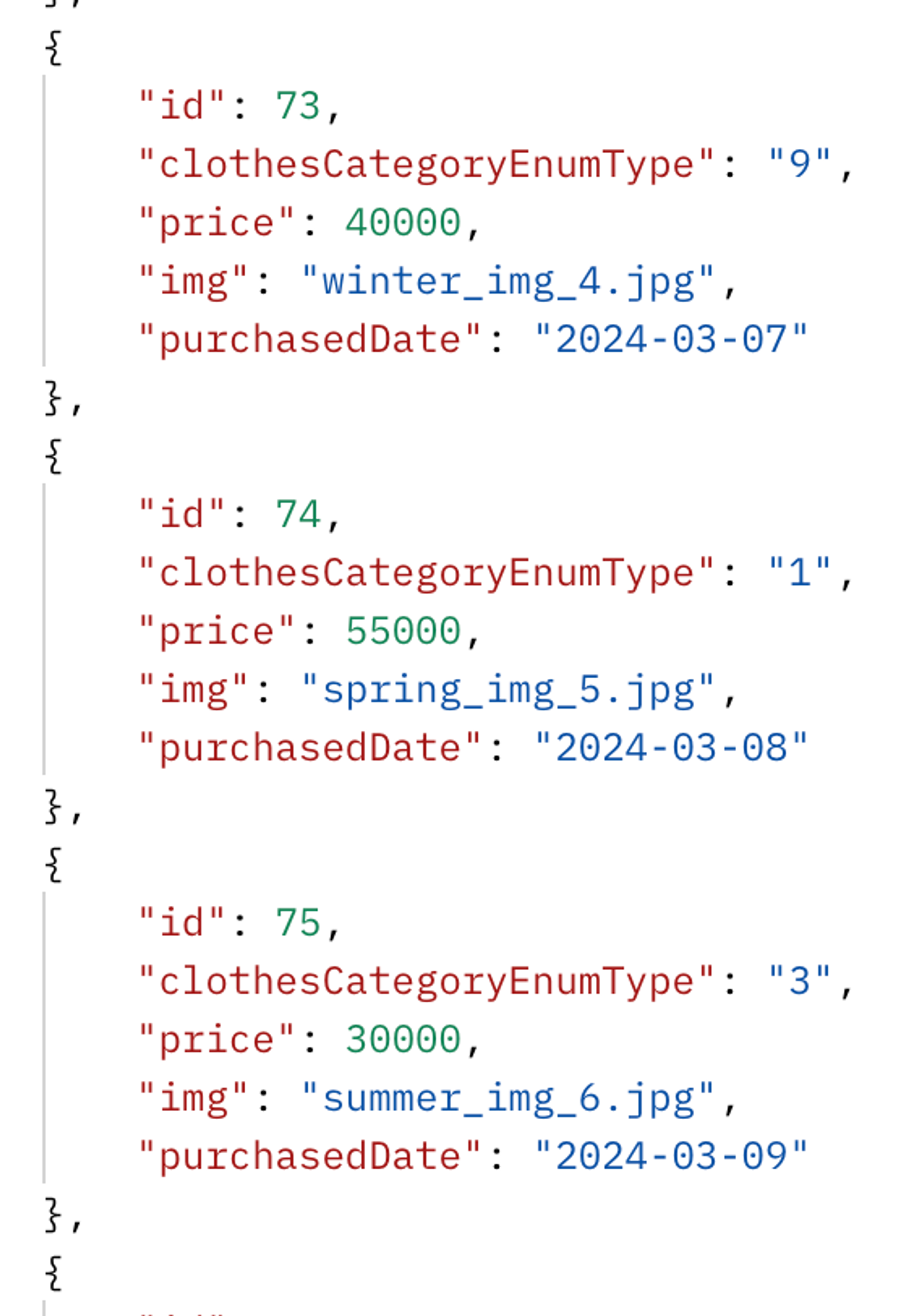 2-2. 마찬가지로 계절별로 응답 객체를 만들고 계절별로 조회 로직을 수정했다.