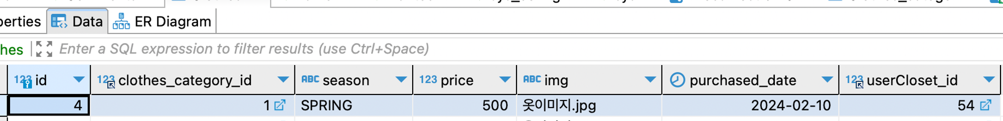 clothes_category테이블에 있는 id값을 찾아서 값을 넣었는데