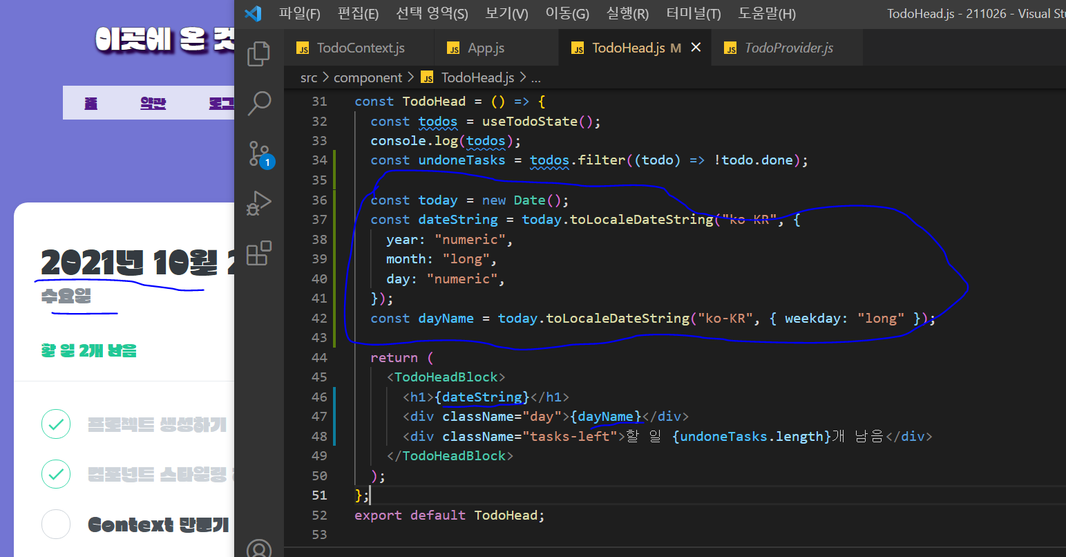 참고로 투두리스트 만들 때 시간 적용한 코드는 이와 같음