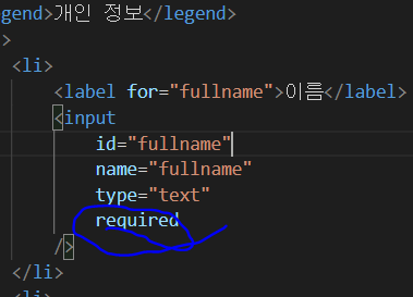 <input> 태그의 required 속성: 반드시 채워져 있어야 하는 입력 필드를 명시