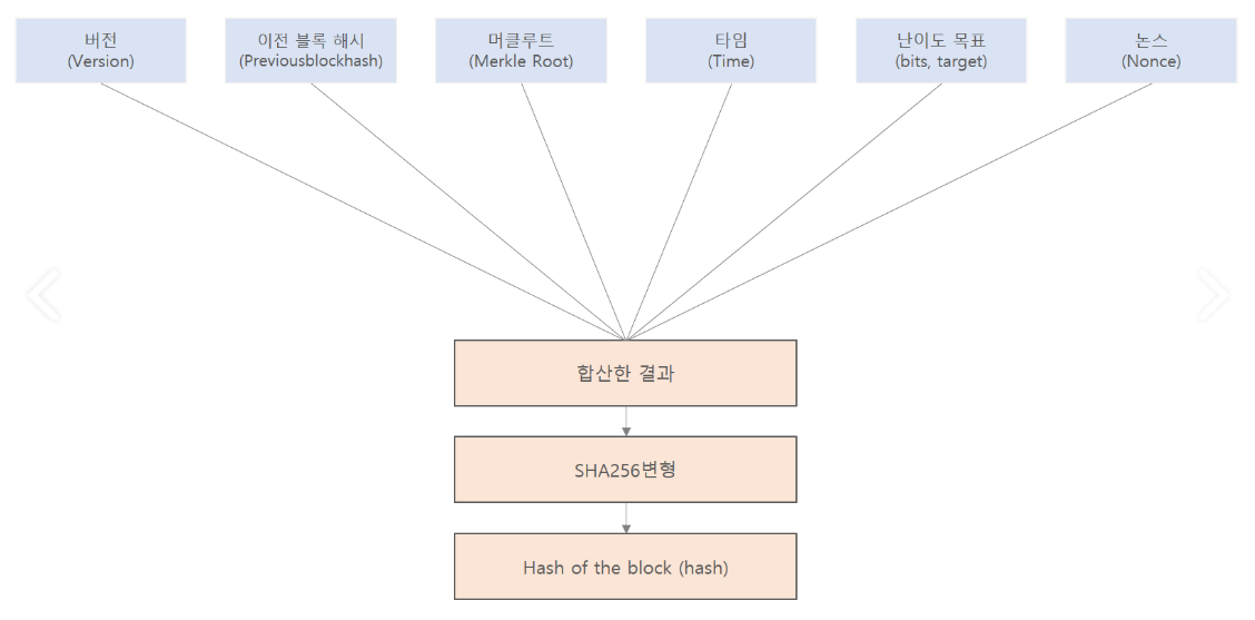 bits : 난이도 해시 목표값을 의미하는 지표
