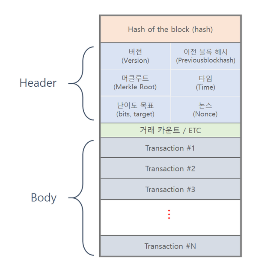 크게 블록 헤더와 블록 바디로 나눌 수 있다.