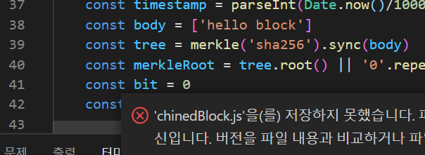 해당 모듈 설치 후 body에 들어갈 트랜잭션(거래내역)인 첫 번째 데이터로 hello block을 넣음
