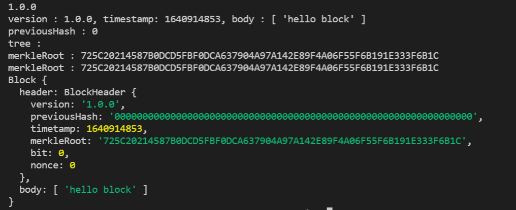 const block = createGenesisBlock()