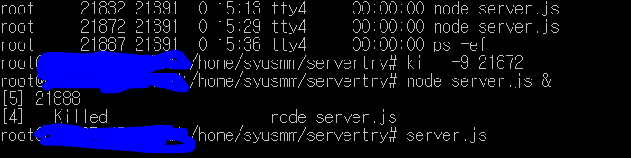 이유는 이전에 한 node server.js가 죽지 않은게 여러 개 있어서 그랬음