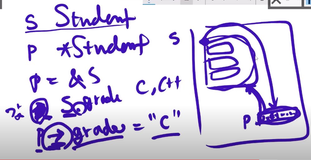 //p에 a 주소 대입, p의 값은 a의 주소를 가르키고 있다