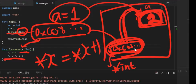 //얘는 아까 x++와 같은 거라 볼 수 있쥐, 그때 포인터로 안하면 a에서 값만 복사돼서 x++여도 x는 함수 안이라서 a가 늘어나진 않았어