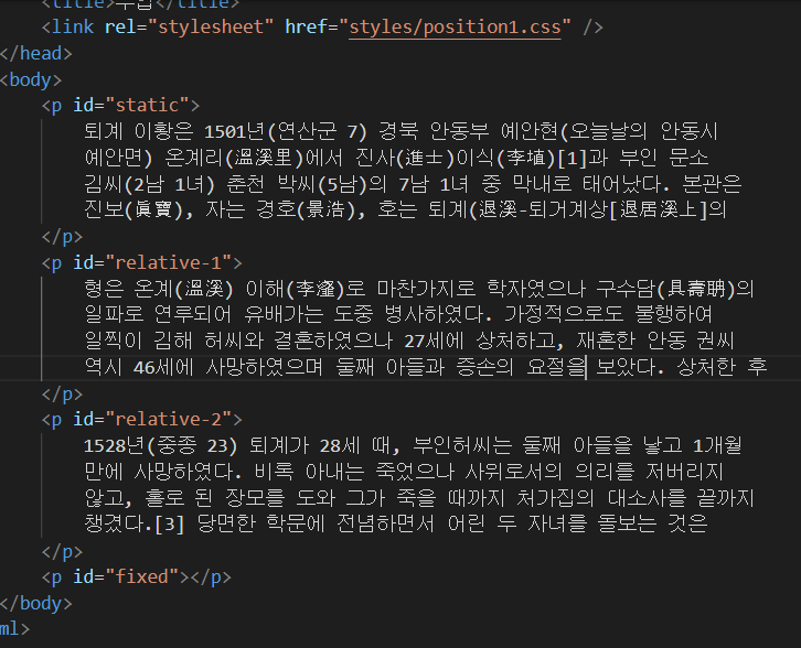 위치값을 지정하면 요소중에서 relative를 사용한 요소를 기준으로 위치를 지정함…