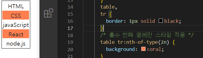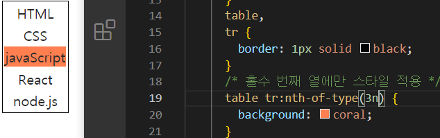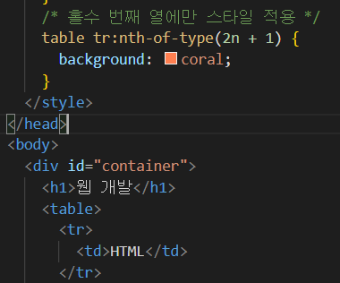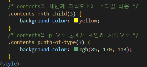 요소가 여러 개 나열되어 있는 경우에는 굳이 class나 id를 쓰지 않고 스타일을 지정(몇 번째인지 구분해서)할 수 있다.