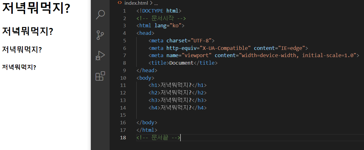 왼쪽이 결과물 / 이 태그는 h6까지 있다고 함