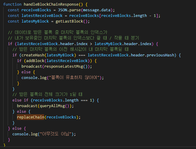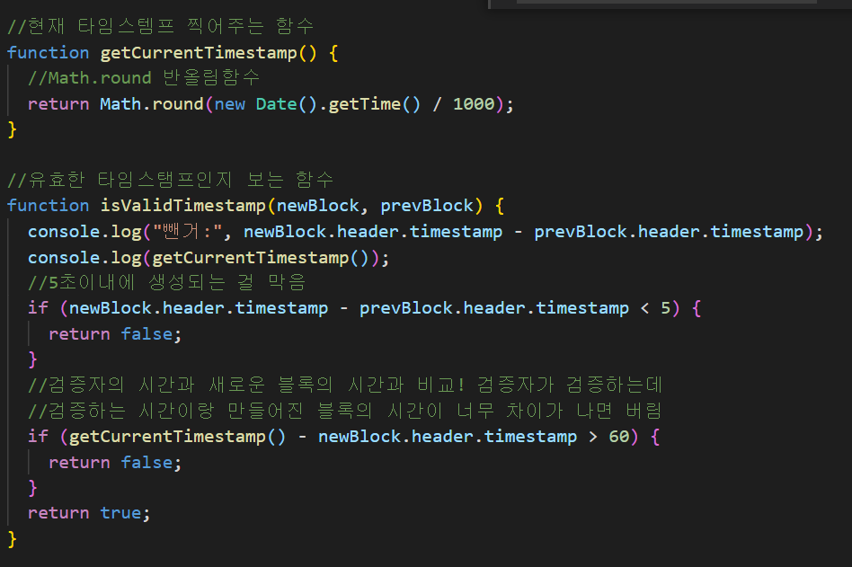참고로 나 저기 들어가는 ,"새블록, 이전블록" 이렇게 써놓은 거, 파라미터(매개변수parameter)가 이름 내마음대로 지어줘도 되는건지 몰랐음.. 그래서 req, res도 막 거꾸로 써도 되더라고. 이전에 보내준 값(전달인자 argument)을 여기서 어떤 이름으로 쓸지 변수 정하고 이 함수 안에서 쓰는 것이었다!!!! 이전에 보내준 값이름이랑 이름이 달라도 상관없는 것!..ㅋㅋㅋ그동안 이름같은게 많길래 헷갈렸는데 이렇게 유동적이었다뉘