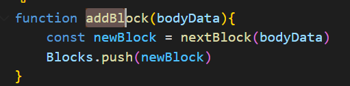 이전 블록의 정보(가장 최신 블록 정보)를 getLastBlock함수를 이용해서 가져오고 prevBlock에 넣어둔다.