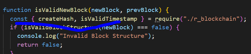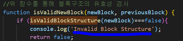 //블록구조 유효한지 //현재 블록의 인덱스가 이전 블록의 인덱스보다 1만큼 큰지 //이전블록의 해시값과 현재 블록의 이전해시가 같은지 //데이터 필드로부터 계산한 머클루트와 블록헤더의 머클루트가 동일한지 //이 조건 다 맞으면 올바른 구조체이다