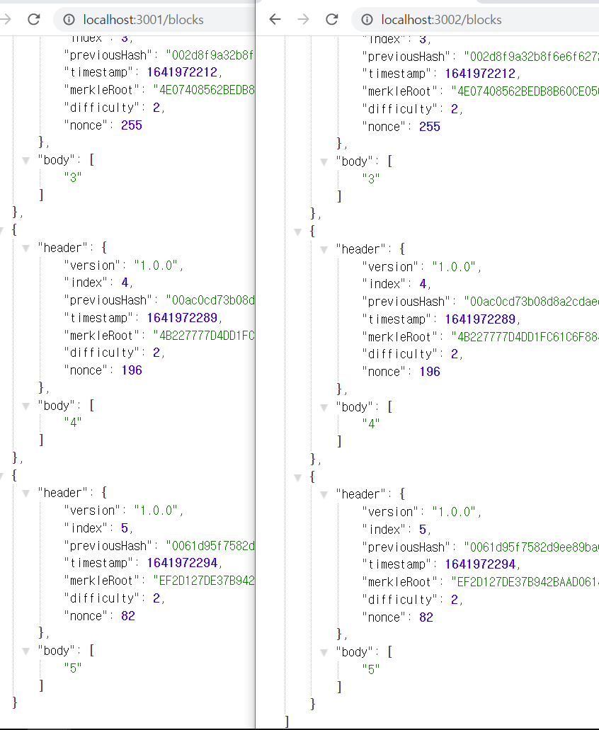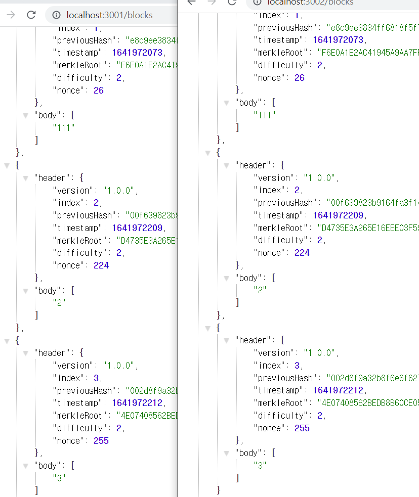 이제 검증과정을 거쳐서 서로블록을 비교하고