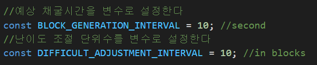 BLOCK_GENERATION_INTERVAL: 블록은 얼마나 자주 채굴되는가(Bitcoin의 경우 10분 간격이죠.)