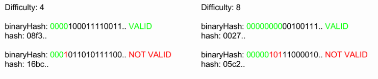 난이도가 4일 때 hash:08f3... 이거를 binaryHash 2진수로 변환한거임 0: "0000", 8:"1000", f:"1111",3:"0011"